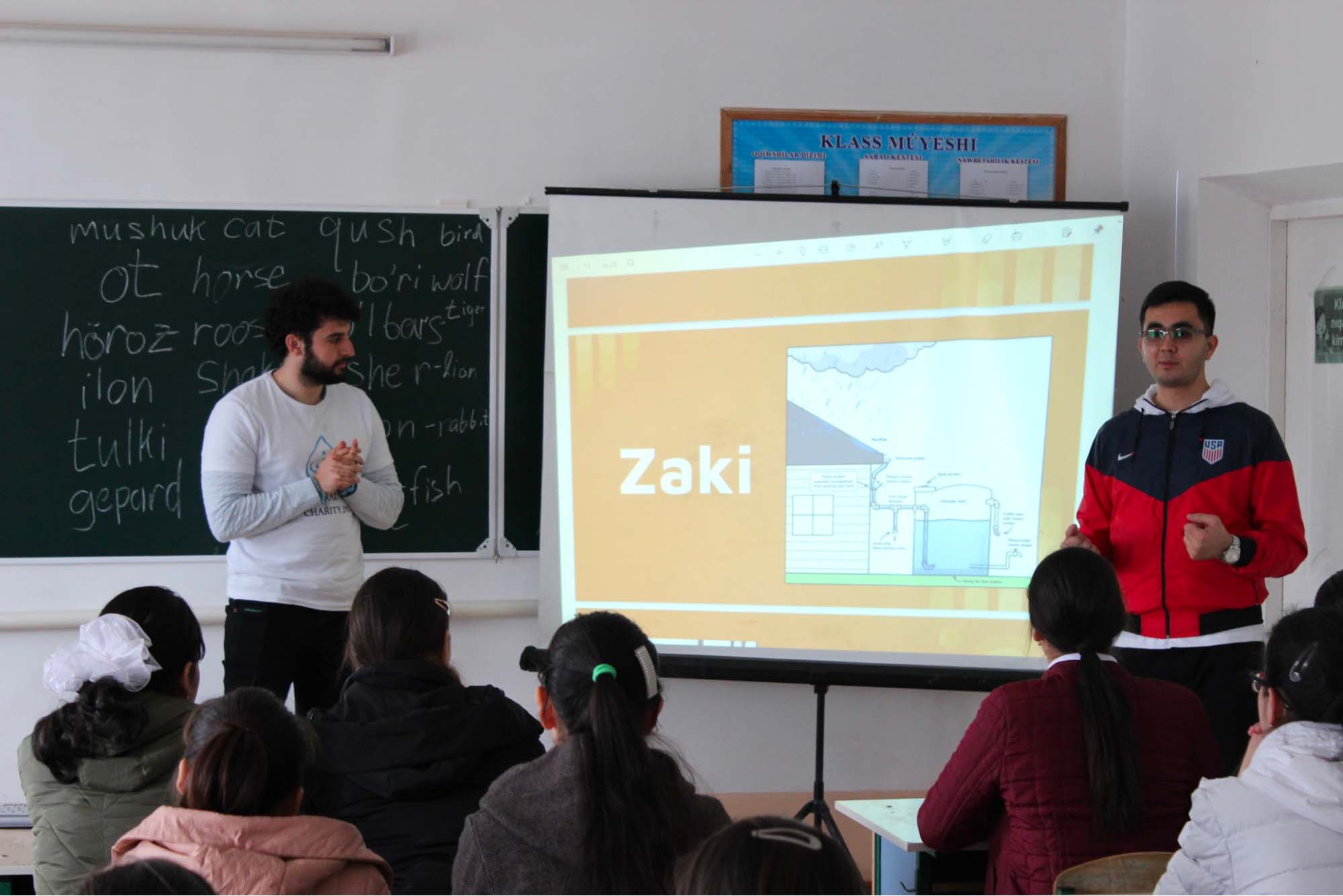 We designed and instructed lessons for 6 days across two weeks. I led two of these lessons, one on water usage statistics and another on water filtration. My lessons were given in English with translation by one of our Uzbek partners.