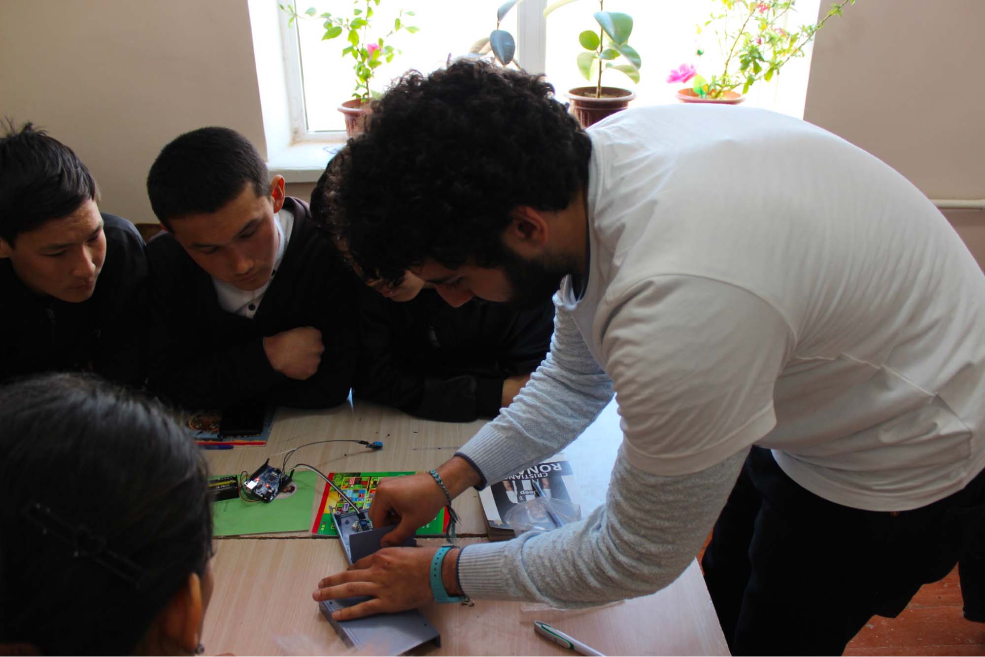 Sirojiddin led sessions on Arduino temperature and humidity sensors and Xumora taught the students simple water transport and fluid dynamics. During their lessons, I checked in on students to ensure they were placing their wires into the correct pins and checking their pressure and velocity calculations.