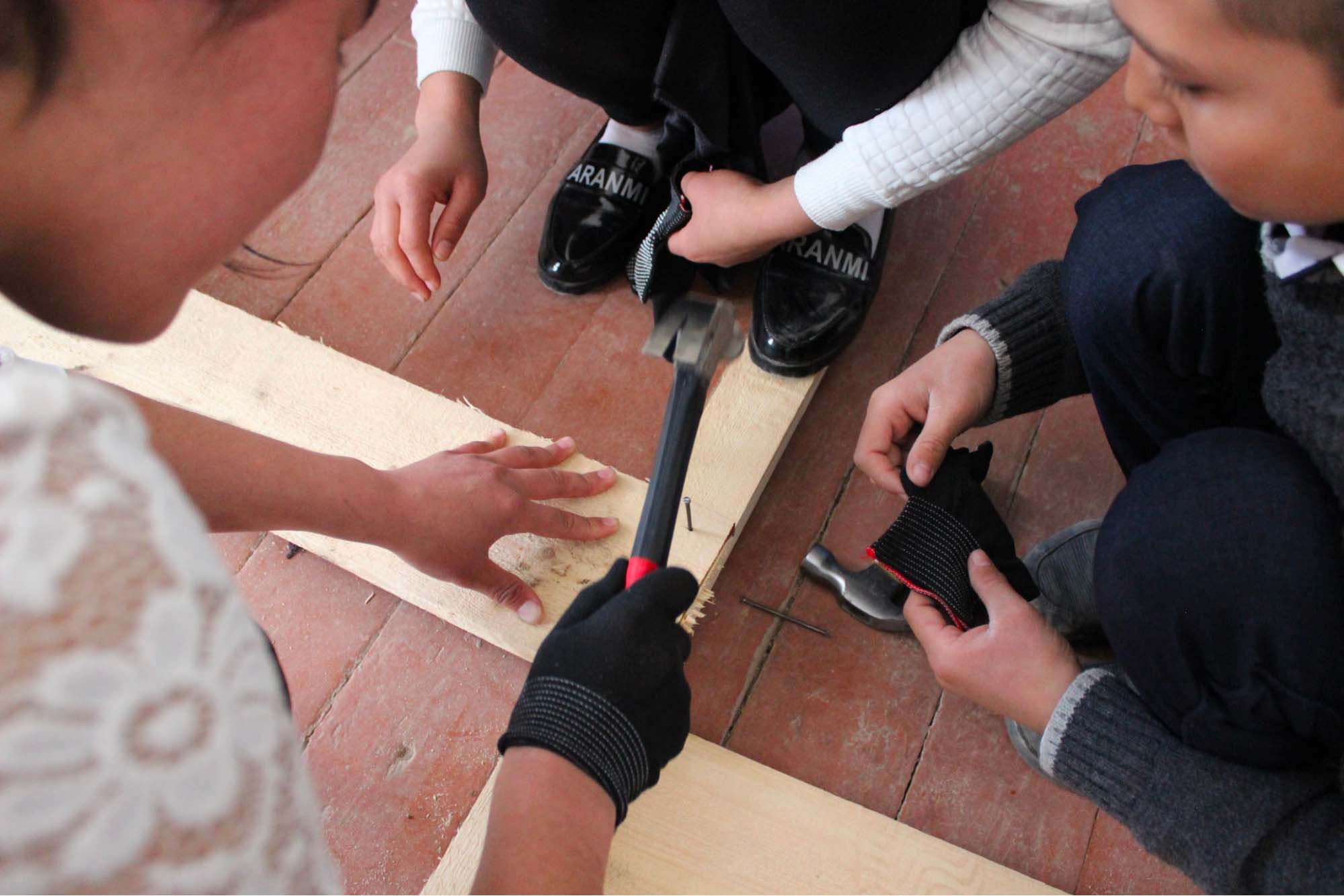 3 projects were selected at each school and teams of 10-15 were formed. Each team had a budget of $250. During the weekend, the organizers traveled to Nukus to procure and transport the requested materials. The following photo journal captures their projects and work: